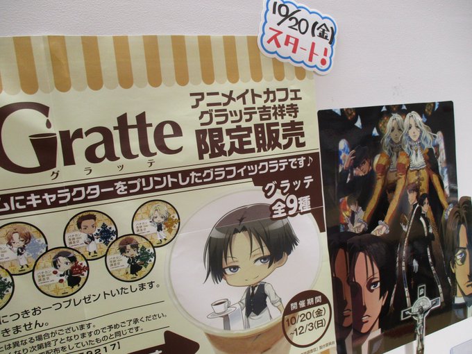 アニメイト吉祥寺パルコ 彡 در توییتر カフェ カフェグラッテ吉祥寺は吉祥寺parcoの7階 アニメイト店内奥にございます 営業時間 は11時 時30分 ラストオーダー時15分 ですキチ アニメイト吉祥寺の営業時間とは異なりますのでご注意ください 現在のコラボ